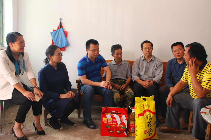 座談會(huì)結(jié)束后,在那樓鎮(zhèn)陸文威書記的陪同下,龔國(guó)強(qiáng)董事長(zhǎng)一行先后來到貧困戶盧創(chuàng)興和梁蔭坎家里開展入戶慰問工作。在盧創(chuàng)興家里,龔董事長(zhǎng)緊緊握住盧創(chuàng)興老人的手,詳細(xì)地了解盧創(chuàng)興家庭情況,當(dāng)了解到盧創(chuàng)興家通過轉(zhuǎn)移勞動(dòng)力的方式,增加創(chuàng)收途徑,實(shí)現(xiàn)脫貧的時(shí)候,龔董事長(zhǎng)頻頻點(diǎn)頭。在貧困戶梁蔭坎家里,董事長(zhǎng)了解到他通過發(fā)展種養(yǎng),憑著農(nóng)村人樸實(shí)無華的特質(zhì),種養(yǎng)產(chǎn)品不僅獲得豐收且供不應(yīng)求的時(shí)候,董事長(zhǎng)給他豎起了大拇指,鼓勵(lì)他繼續(xù)擴(kuò)大生產(chǎn)規(guī)模,早日實(shí)現(xiàn)小康生活。調(diào)研組一行還向兩戶貧苦戶送上了慰問品。