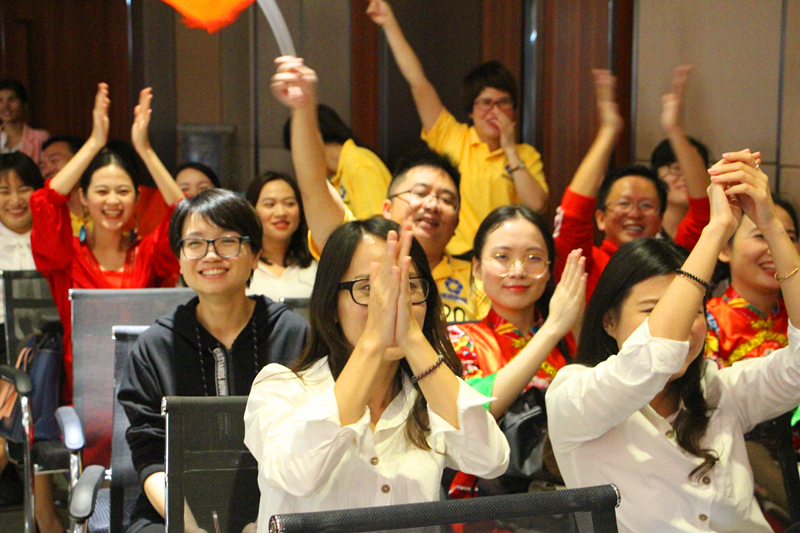 臺(tái)下觀眾熱情高漲,展現(xiàn)集團(tuán)公司全體員工團(tuán)結(jié)一心的良好風(fēng)貌