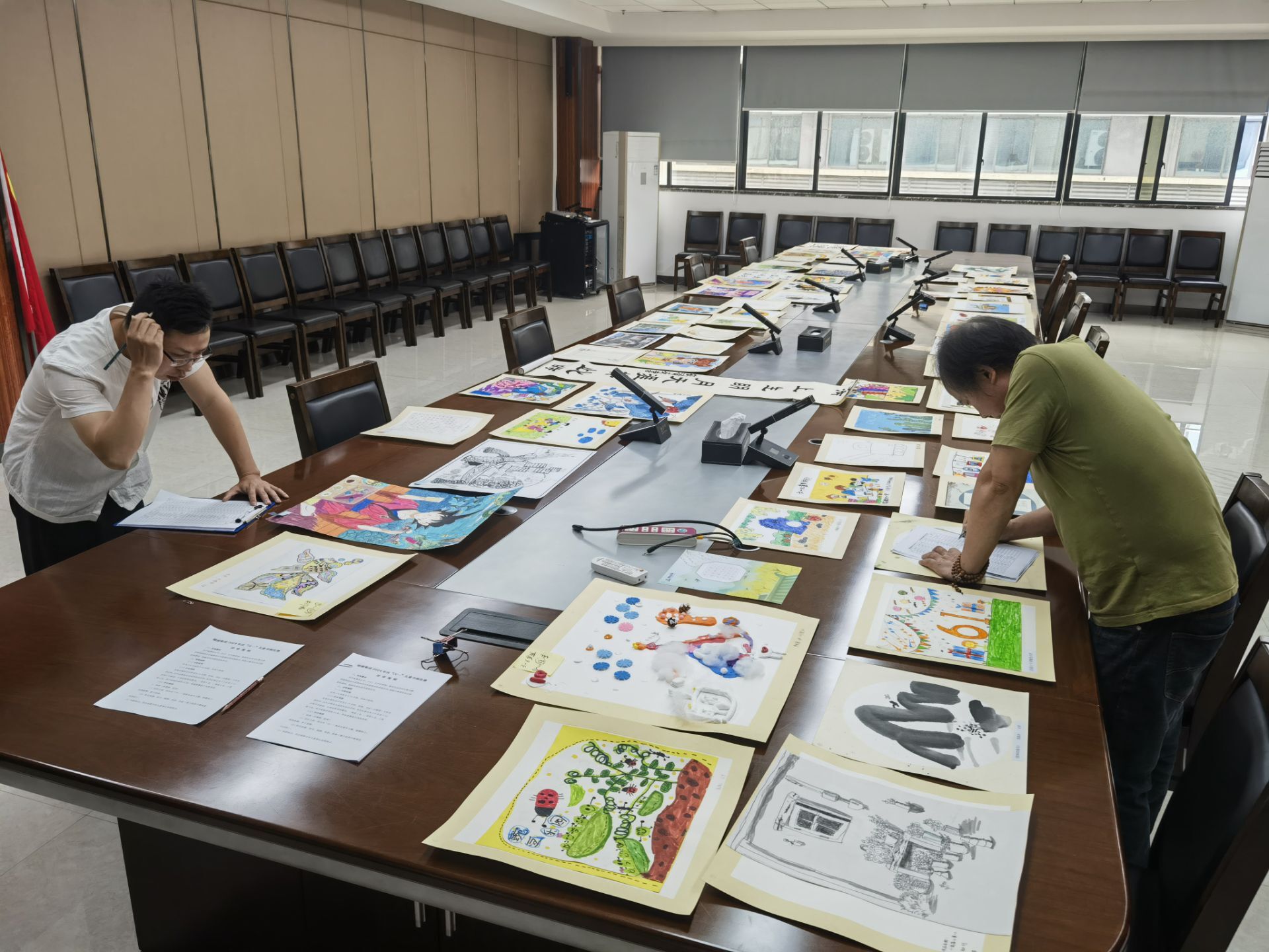 為了確保比賽的公正性和專(zhuān)業(yè)性,綠港集團(tuán)創(chuàng)新性地采用了現(xiàn)場(chǎng)與遠(yuǎn)程相結(jié)合的評(píng)審模式,特邀專(zhuān)業(yè)評(píng)委老師、學(xué)生評(píng)委組成評(píng)審團(tuán)。部分無(wú)法親臨現(xiàn)場(chǎng)的評(píng)委遠(yuǎn)程參與了作品評(píng)審過(guò)程,與現(xiàn)場(chǎng)評(píng)委一同對(duì)參賽的65幅作品從繪畫(huà)主題、構(gòu)圖完整、色彩和諧、作品感染力和創(chuàng)作力等方面對(duì)作品進(jìn)行細(xì)致地考量打分,確保每一幅作品都能得到公平且專(zhuān)業(yè)的評(píng)價(jià)。經(jīng)過(guò)多輪嚴(yán)格篩選,最終從兩個(gè)年齡段組別(3-6歲、7-12歲)中評(píng)選出了共計(jì)14個(gè)獎(jiǎng)項(xiàng)的得主,包括每個(gè)組別的一等獎(jiǎng)1名、二等獎(jiǎng)2名、三等獎(jiǎng)4名。